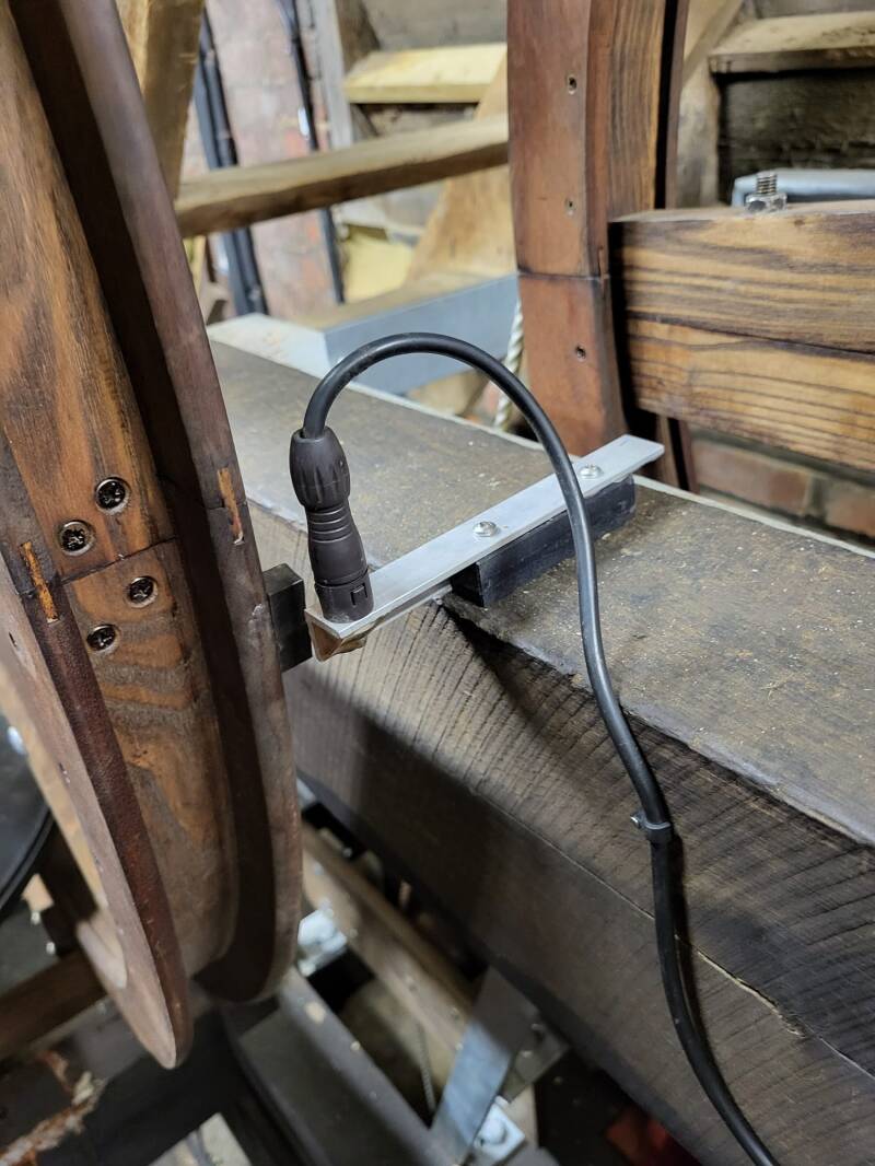 We have a simulator system, which means we can practice without annoying our neighbours as the bells are silent outside the tower, but sound the same inside the tower. We achieve this by tying the clapper on the bell so it can't move, having sensors fitted to each bell and using simulated sound inside the ringing room which sounds very similar to actual ringing.